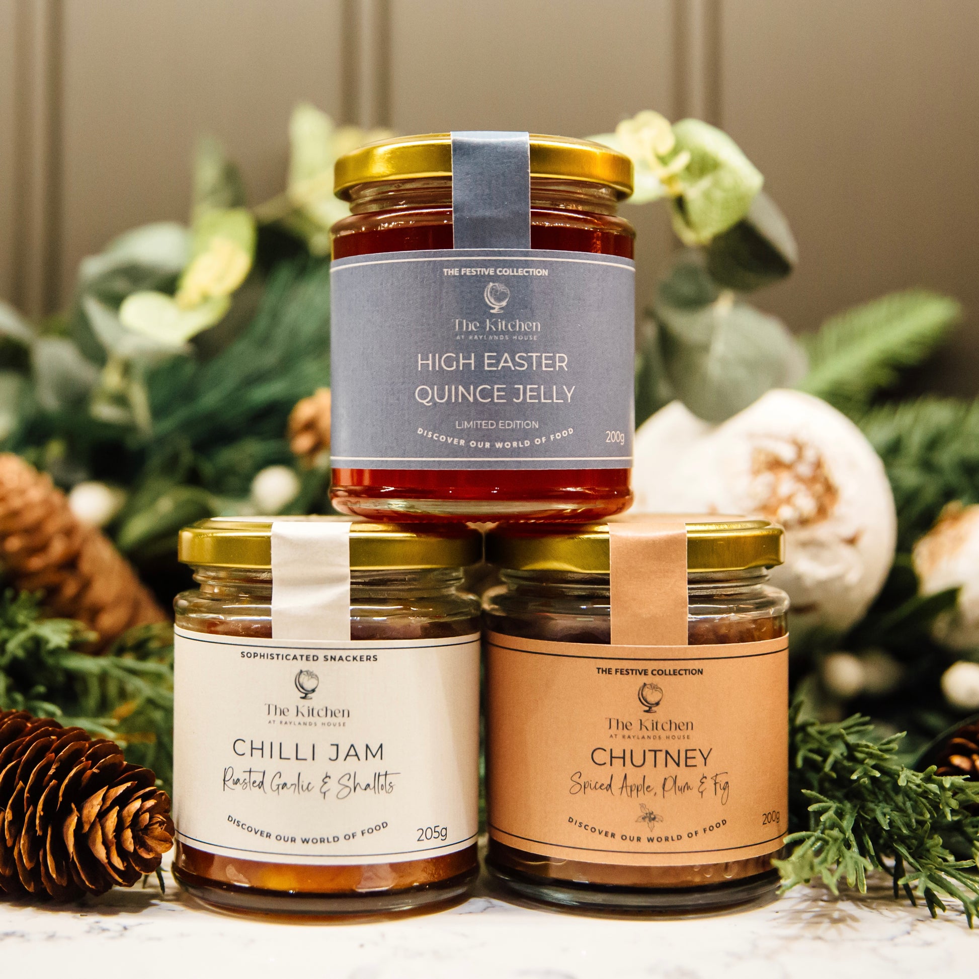 Featuring a Limited Edition High Easter Quince Jelly, this set incudes our popular Roasted Garlic Chilli Jam with Shallots and our seasonal Festive Chutney with Plum & Fig.